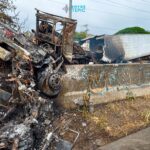 Totalmente calcinado quedó el tráiler que transportaba papel reciclado en...